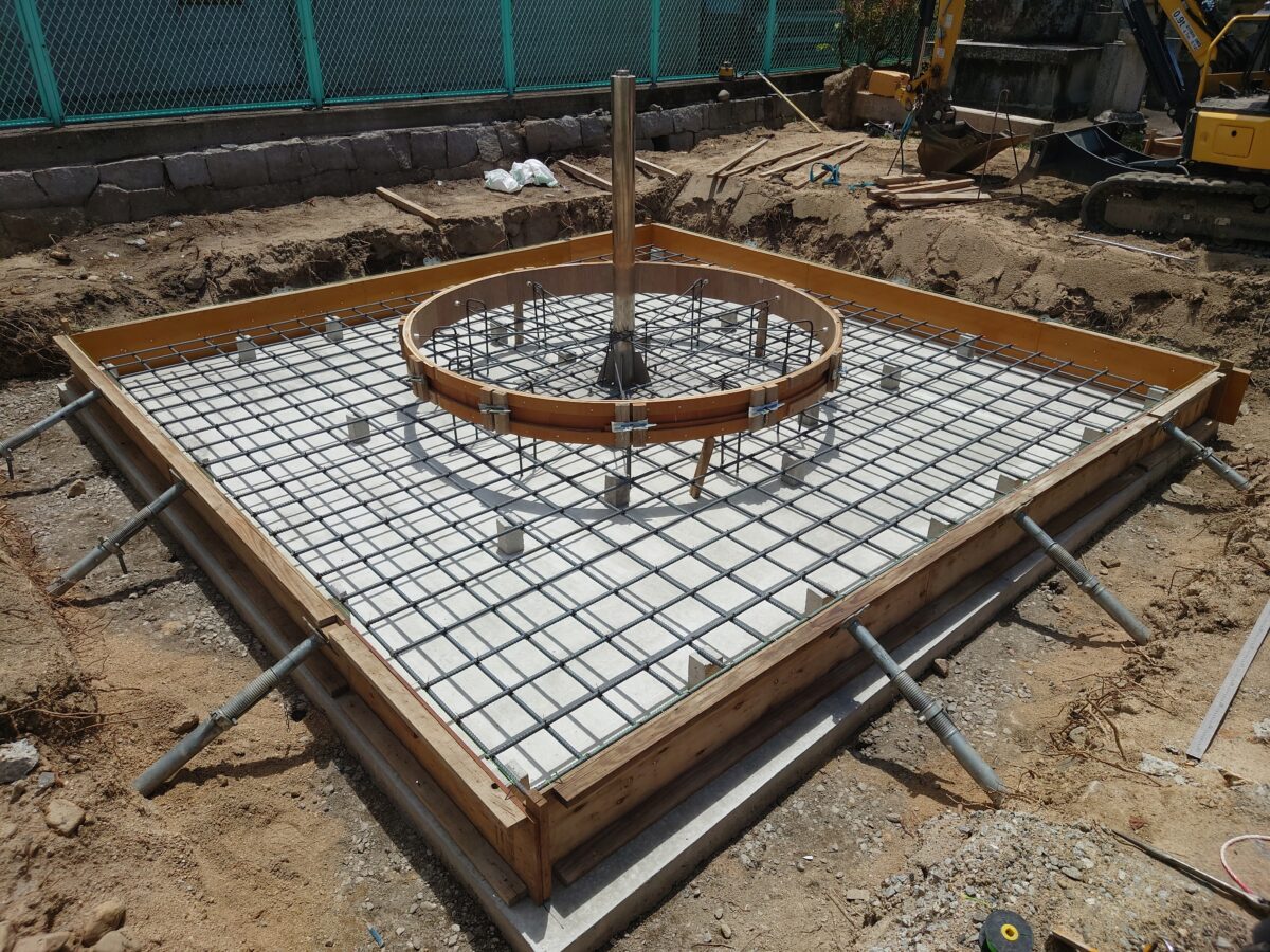基礎づくりにあたって、私なりに大切にしている考えがあります。石には長い命があると考え、千年先を見据えて設計・施工しています。基礎もただ支えるだけでなく、石をできる限り長く守り続けられるように設計・施工しました。そのため、基礎の面積や強度、鉄筋の保護など、あらゆる条件を整え、耐久性を少しでも高められるよう工夫しています。