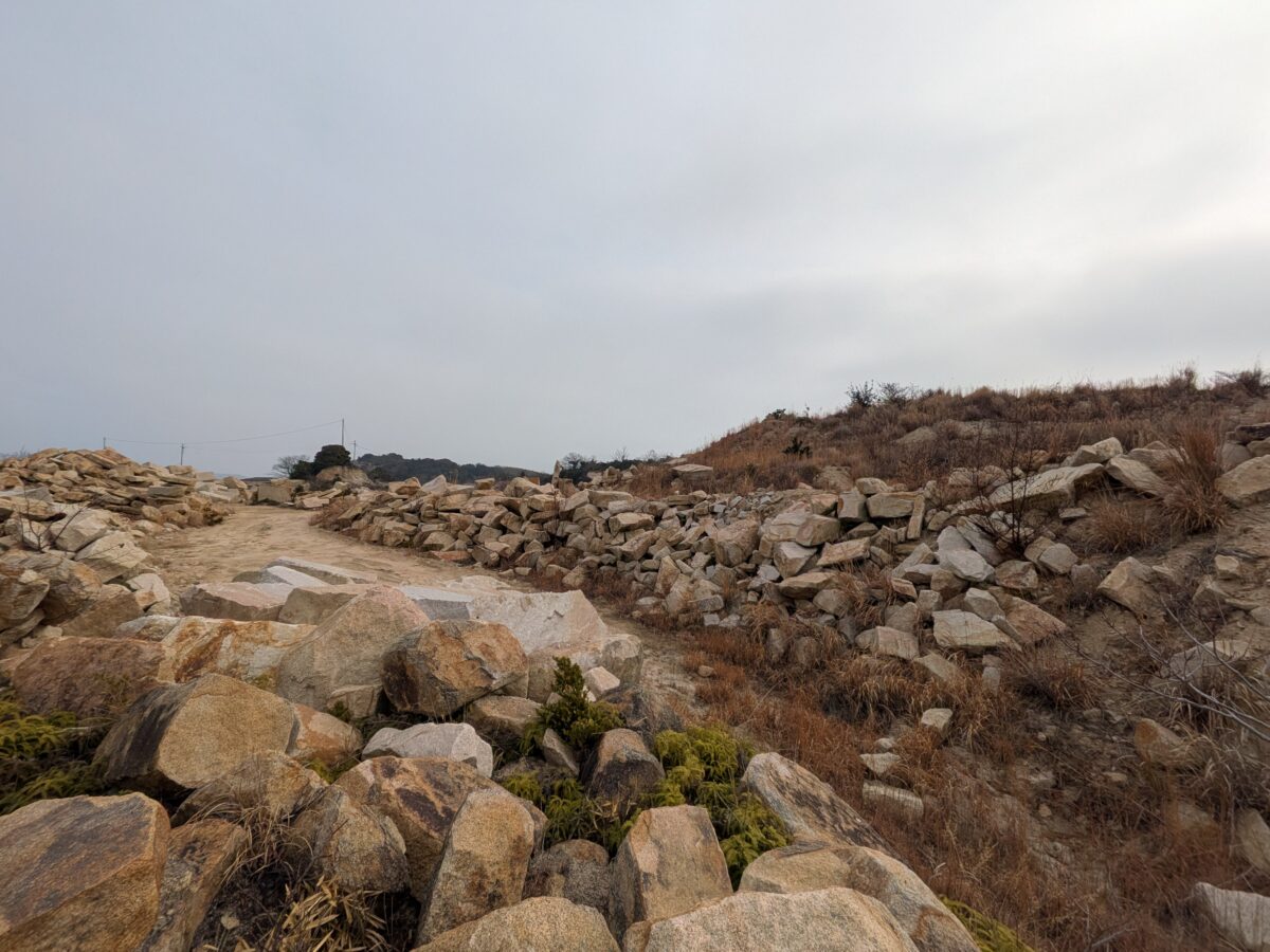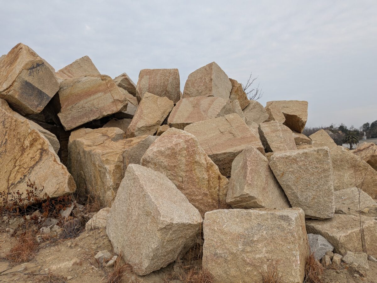景石として使うことを思い浮かべながら丁場を歩いていると、「どの石をどう据えるか」ではなく、「この石は、どんな場所に立つと気持ちがいいだろうか」そんなことを考える時間になっていました。